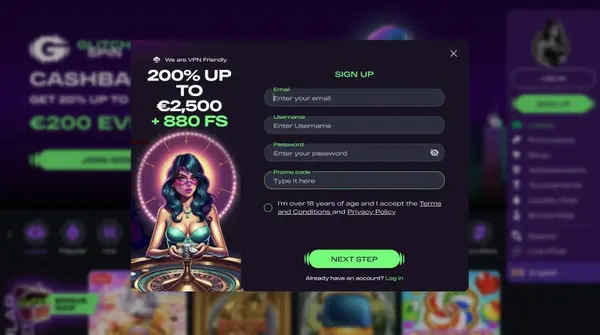 Slik registrerer du deg og bruker GlitchSpin-innlogging